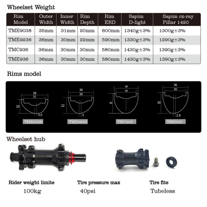 1190gr 35mm wide 29mm inner Paintless Rims 29er Carbon Mtb Bike Wheelset M80 Hub TME9035